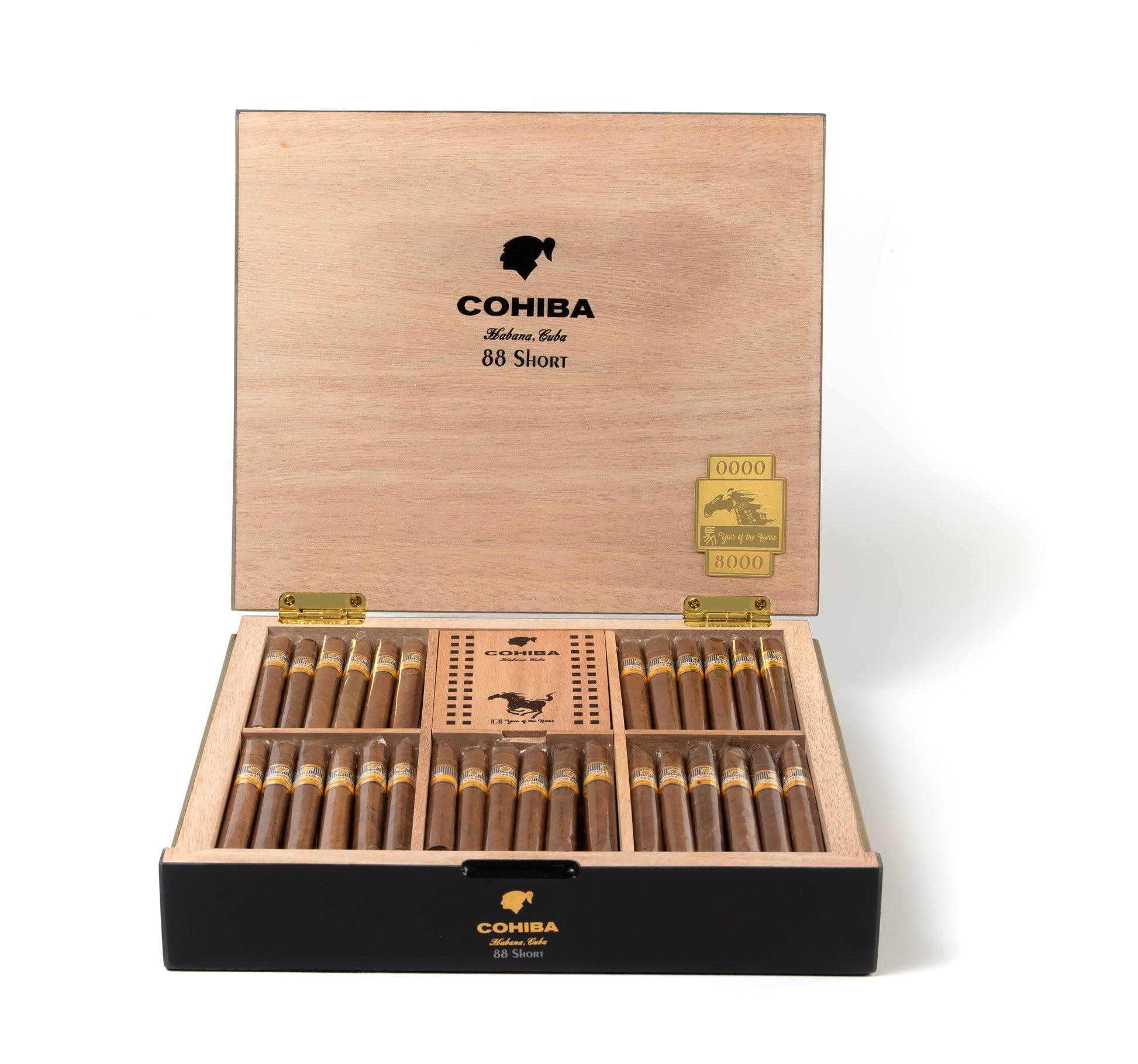 The Cohiba Short Humidor Year of the Horse 2026 celebrates the Lunar New Year with an impressive collector’s edition. These compact, hand-rolled Cohiba Shorts are crafted from high-quality Cuban tobacco and finished with a natural wrapper. Medium in strength, they offer rich notes of cocoa, cedar, roasted tobacco, and gentle spices. Presented in a beautifully designed anniversary humidor containing 88 cigars, this edition serves as both a festive centerpiece and a sophisticated smoking experience.